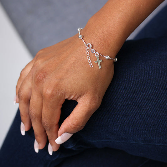 Regular price£0.00Heavy Sterling Silver Rosary Bead Bracelet - 6.5 Inches + 1 Inch Extender