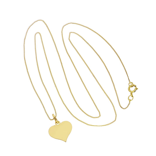 9ct Gold Engravable Heart Pendant Necklace 16 - 18 Inches