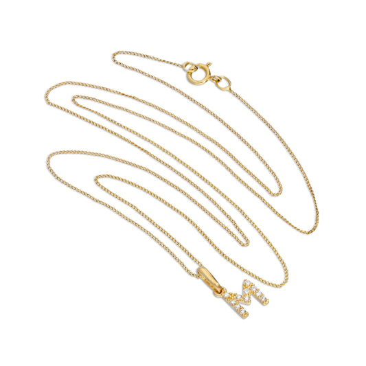 Regular price£0.009ct Gold & Clear CZ Crystal Script Alphabet Letter M Necklace 16 - 20 Inches