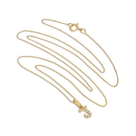 9ct Gold & Clear CZ Crystal Script Alphabet Letter J Necklace 16 - 20 Inches