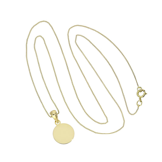 Regular price£0.009ct Gold Engravable Round Pendant Necklace 16 - 20 Inches Chain