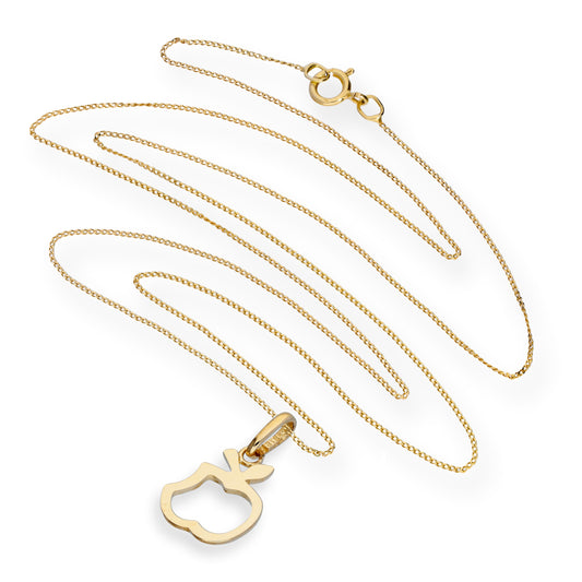 9ct Gold Bitten Apple Outline Pendant Necklace 16 - 20 Inches
