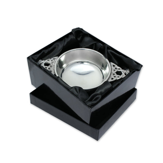 A traditional Scottish drinking vessel, typically shallow with two handles, symbolising friendship, trust, and celebration. Historically used to offer a welcoming drink of whisky or wine, quaichs are often gifted to mark weddings, christenings, and significant life events.