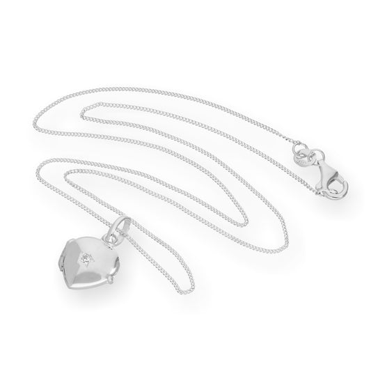 Small Sterling Silver Oval Locket with Diamond on Chain