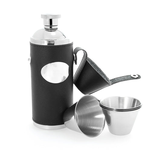 Regular price£0.008oz Black Leather & Stainless Steel Hip Flask with Engraving Plate Personalised
