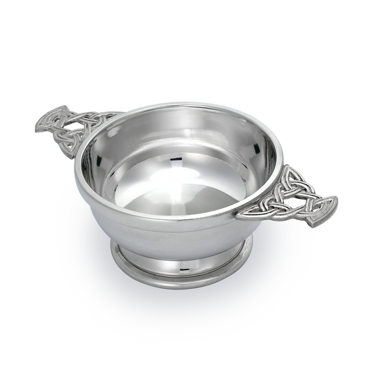 4.5 Inch Handmade Pewter Quaich with Celtic Knot Handles