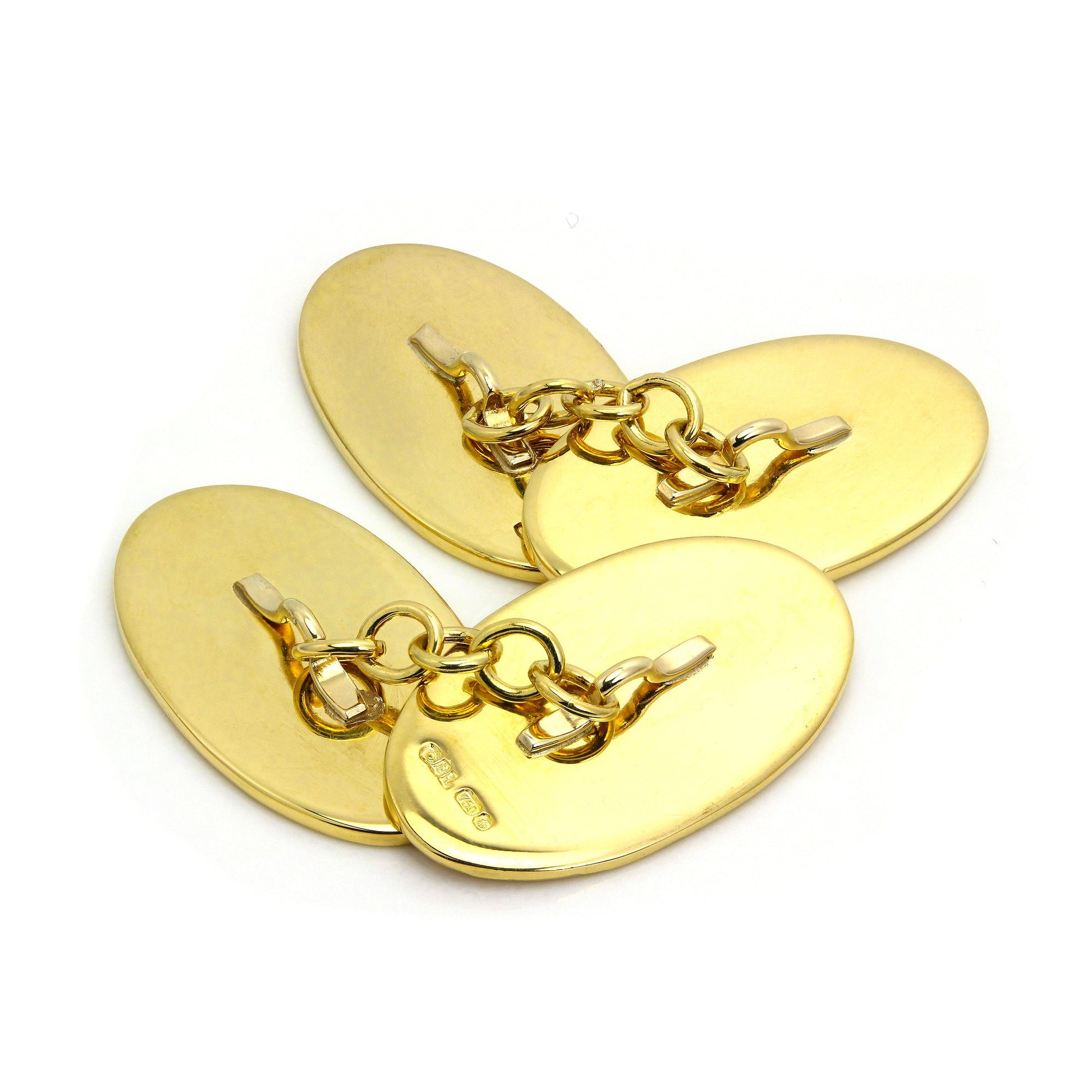 18ct Yellow Gold Heavy Double Sided Oval Chain Cufflinks