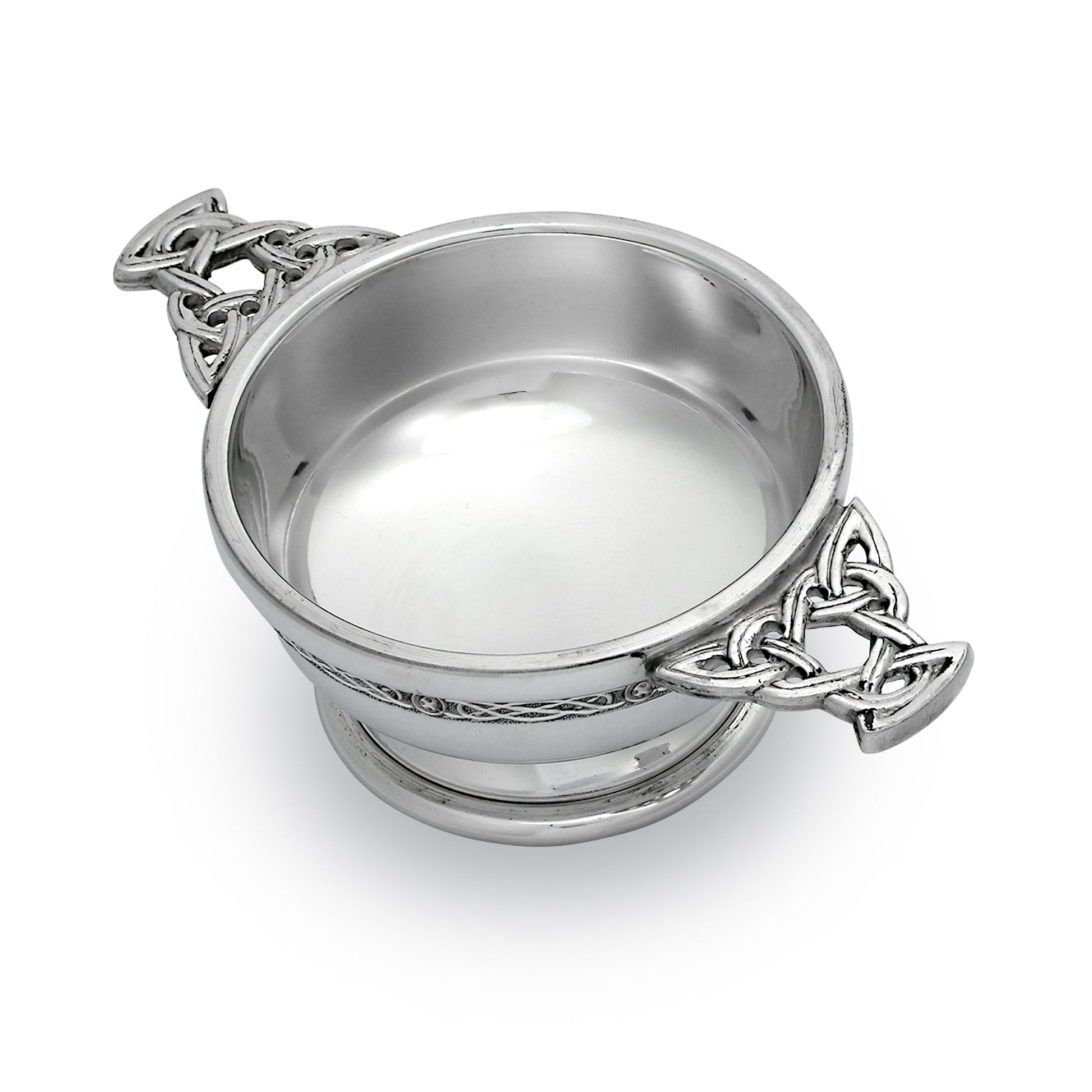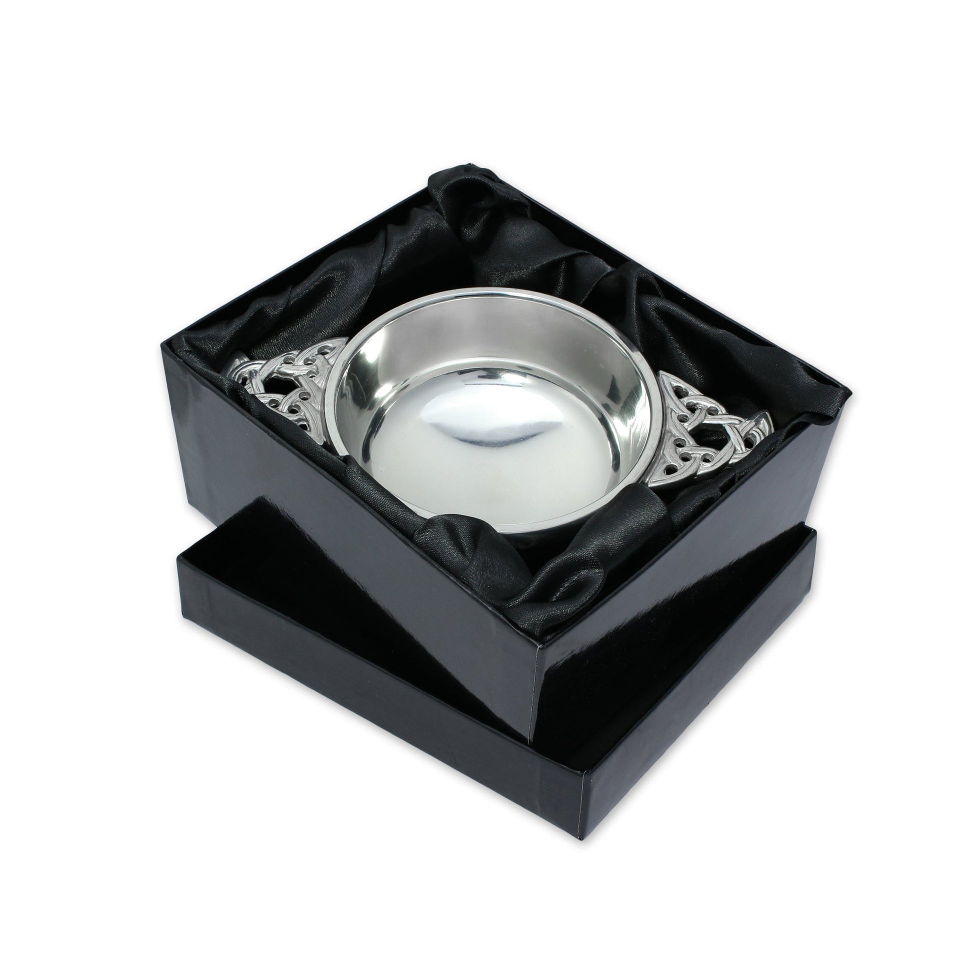 3.5 Handmade Pewter Quaich with Celtic Knot Handles & Band