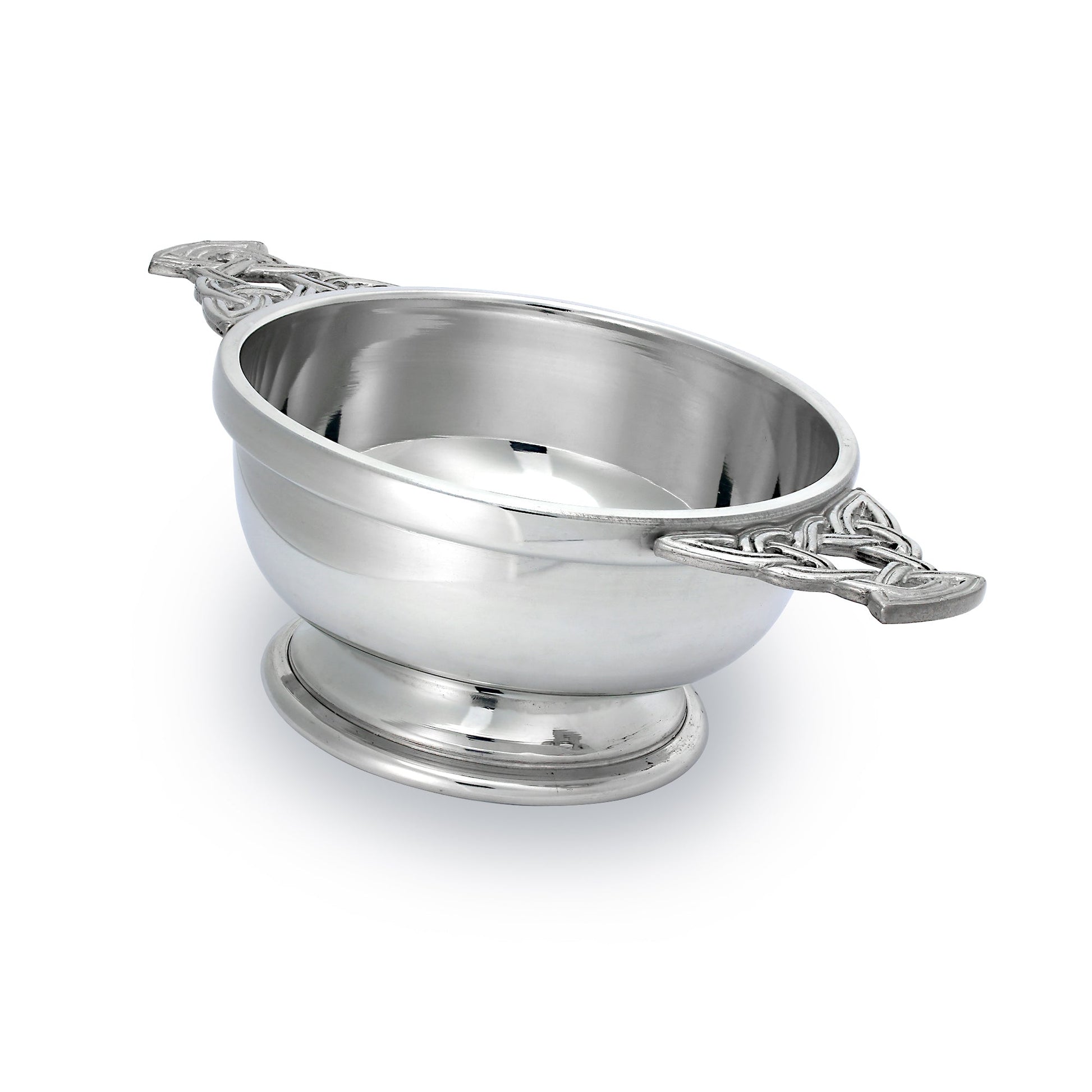 4.5 Inch Handmade Pewter Quaich with Celtic Knot Handles