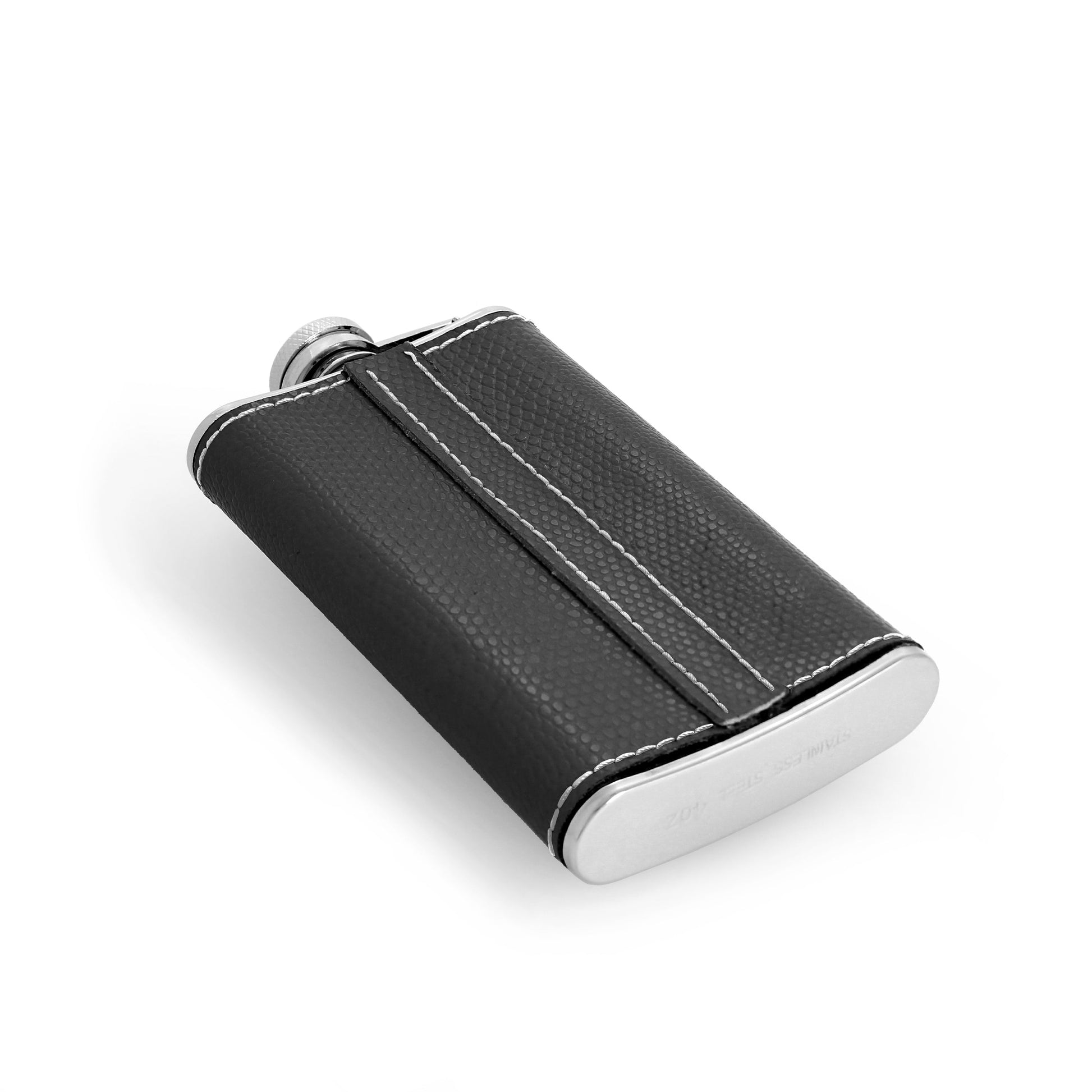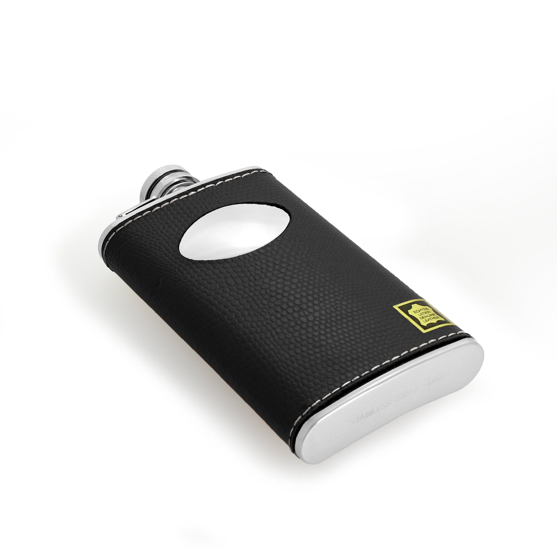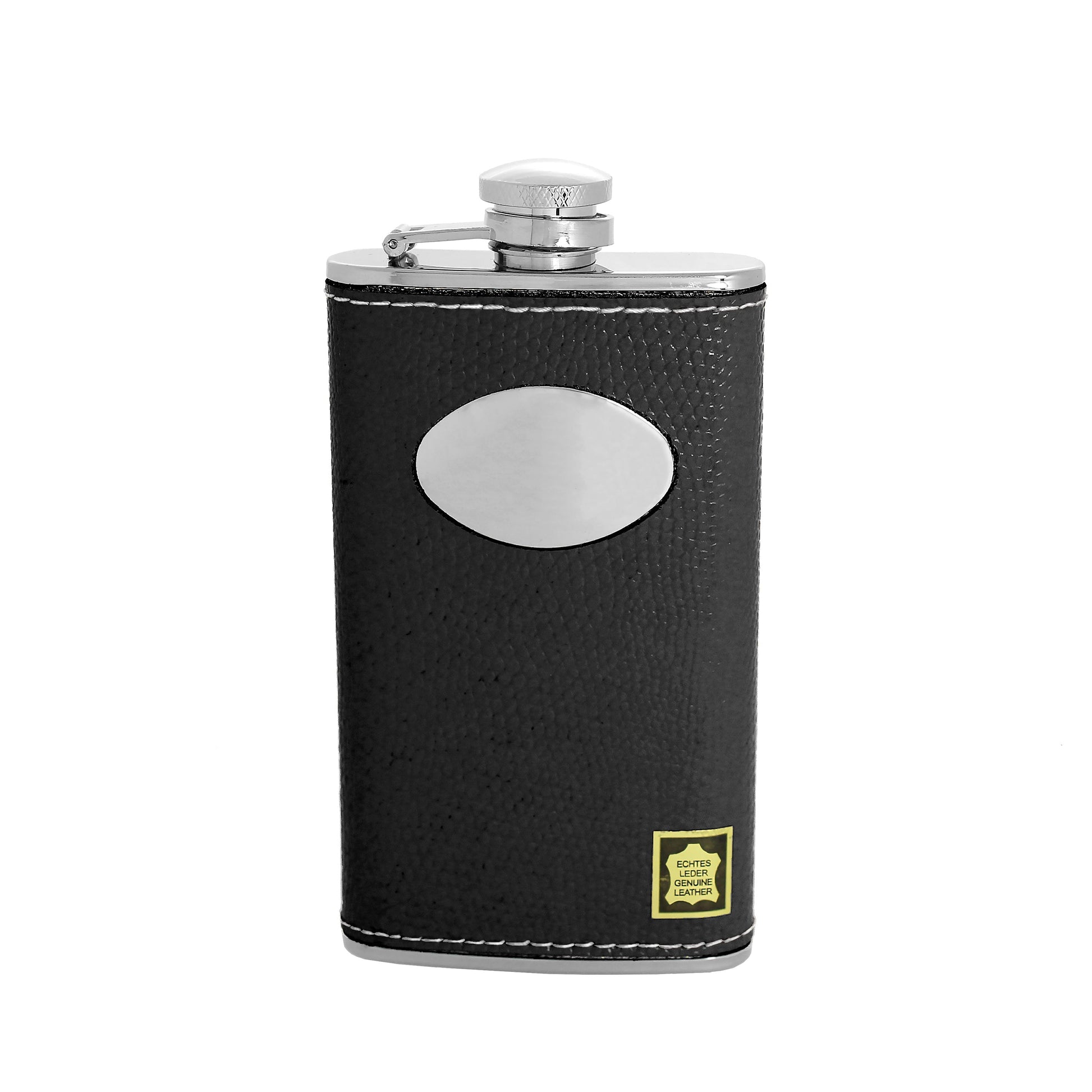 4oz Stainless Steel & Genuine Black Leather Engravable Hip Flask w Funnel