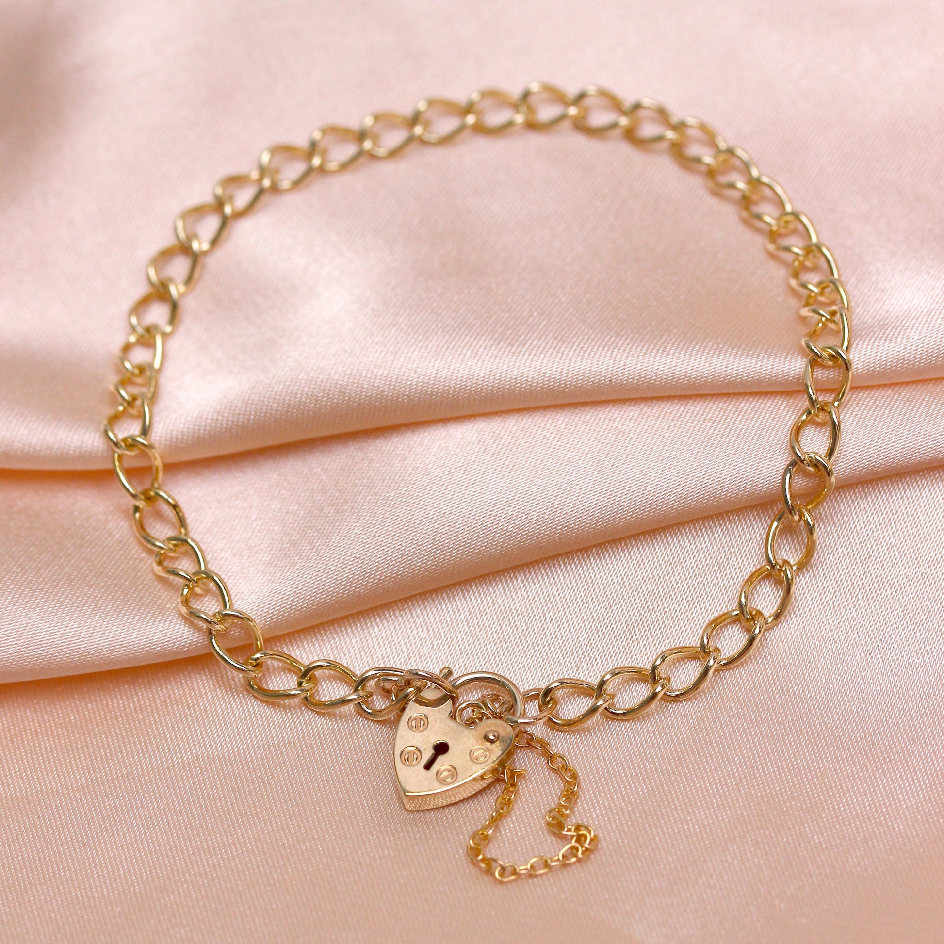 9ct Curb Heart Padlock Gold Charm Bracelet