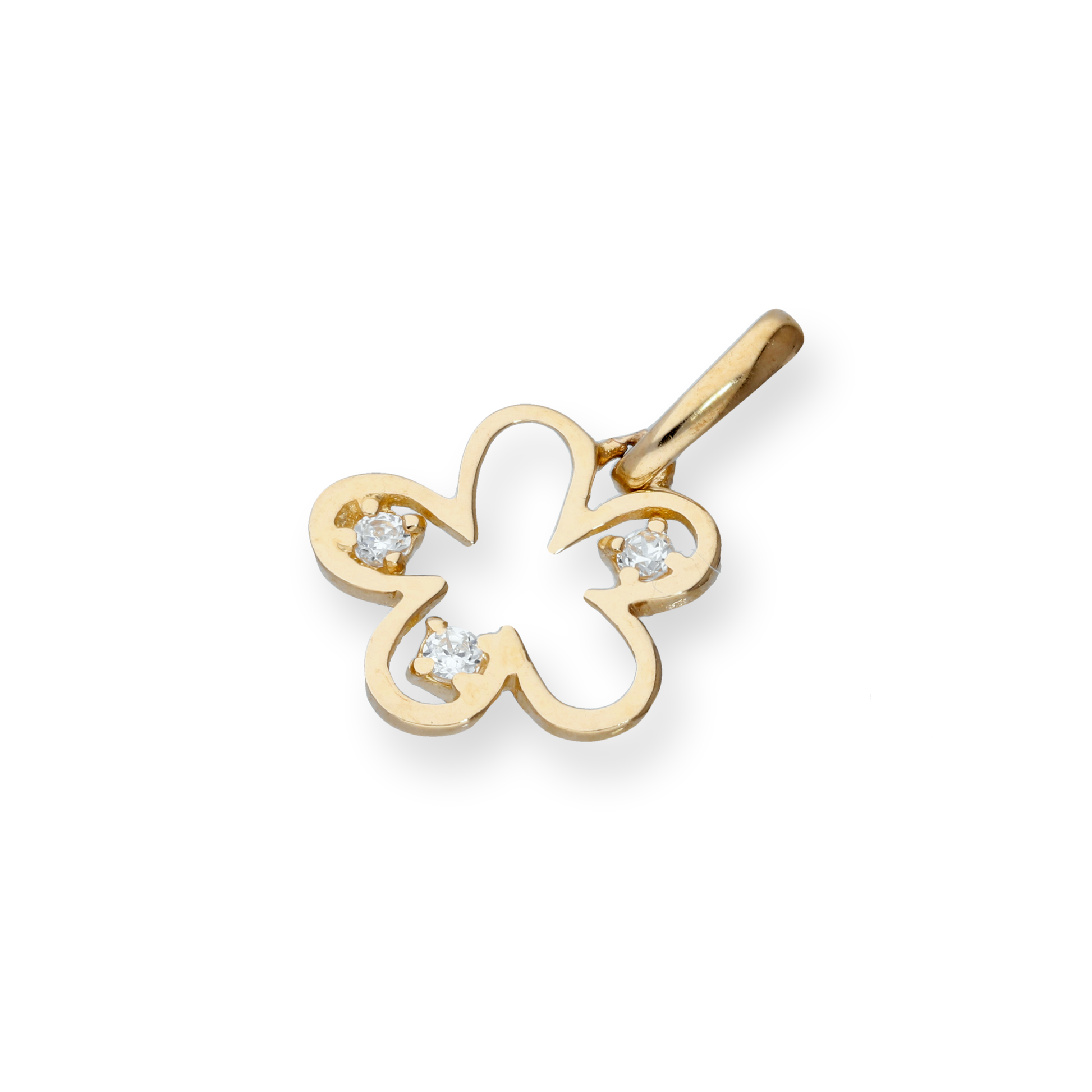9ct Gold & Clear CZ Crystal Flower Outline Charm