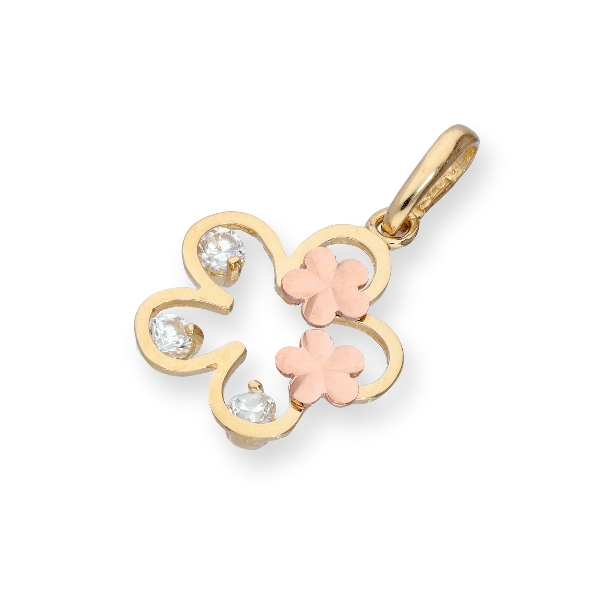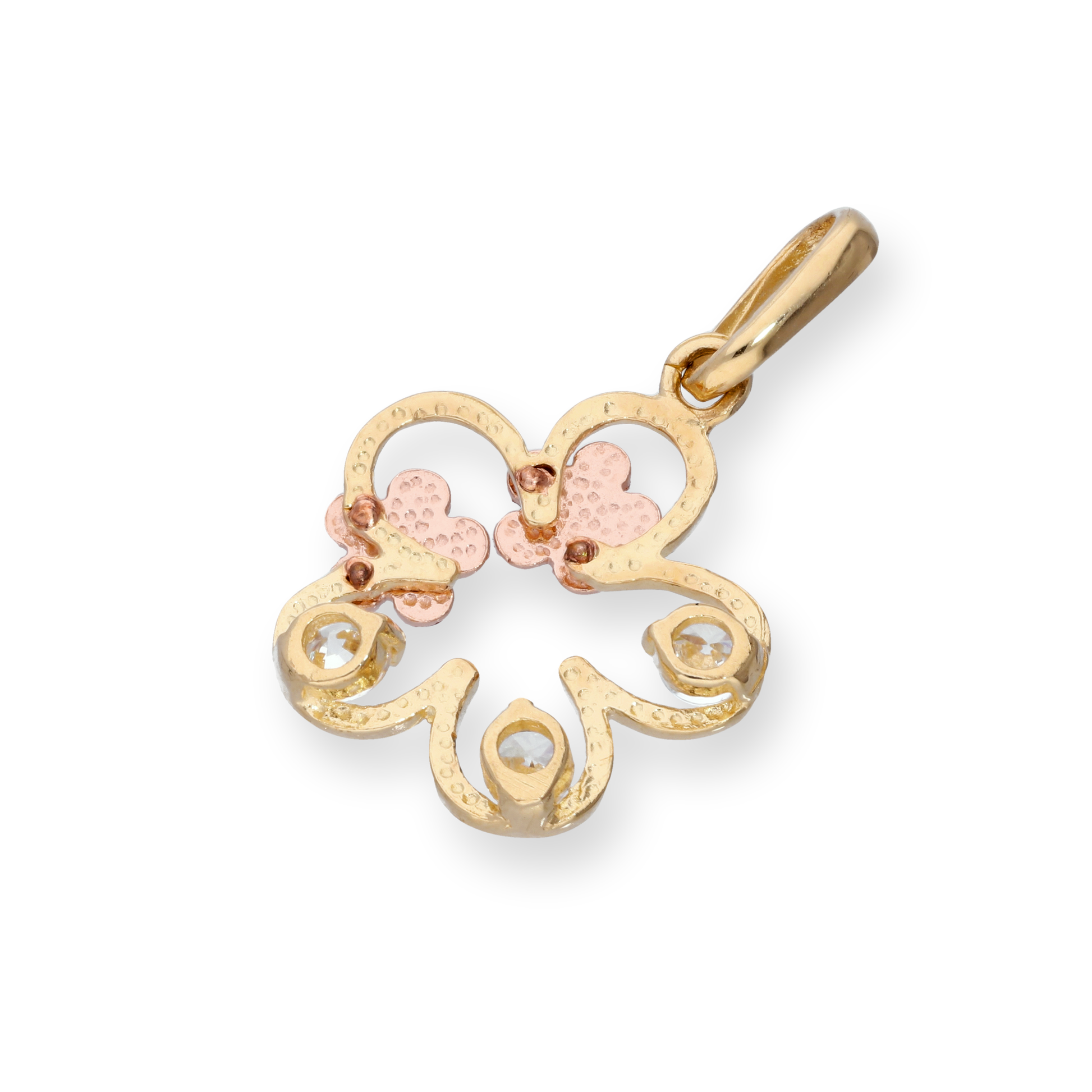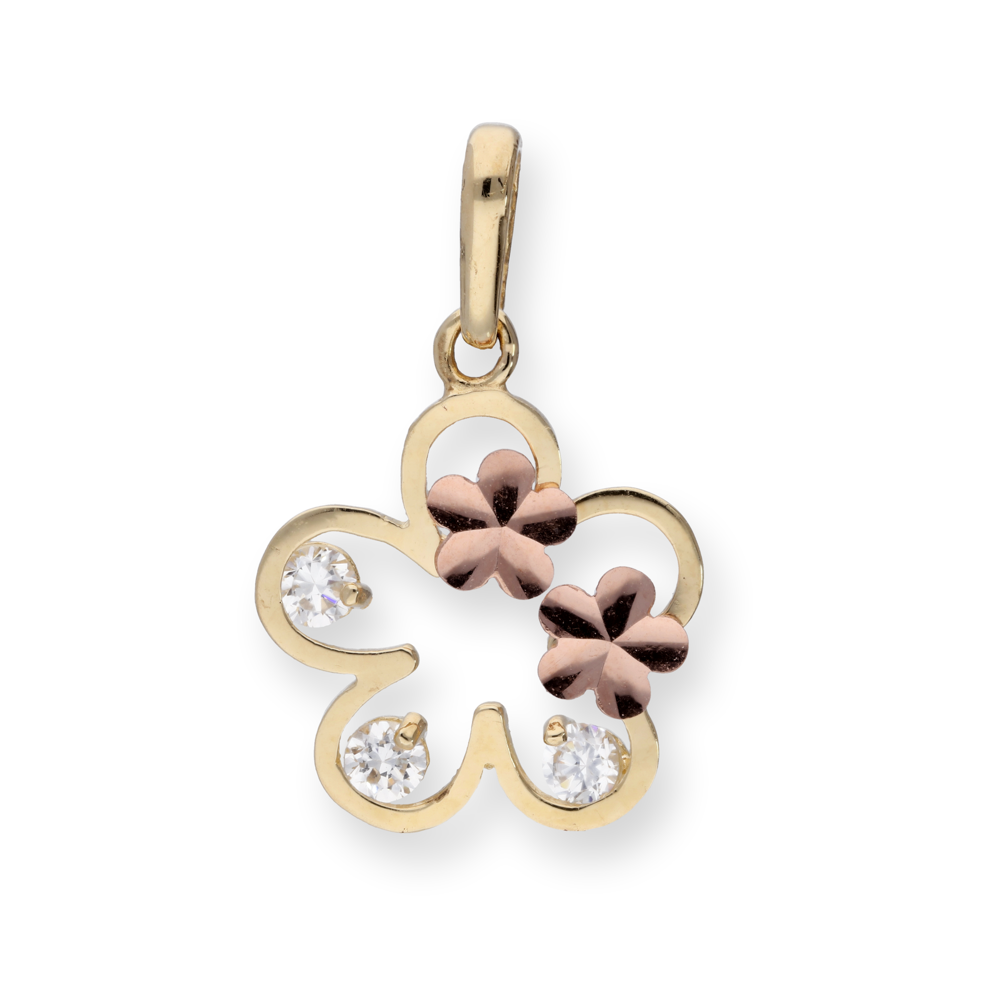 9ct Gold & Clear CZ Crystal Flower Outline w Rose Gold Flowers Charm