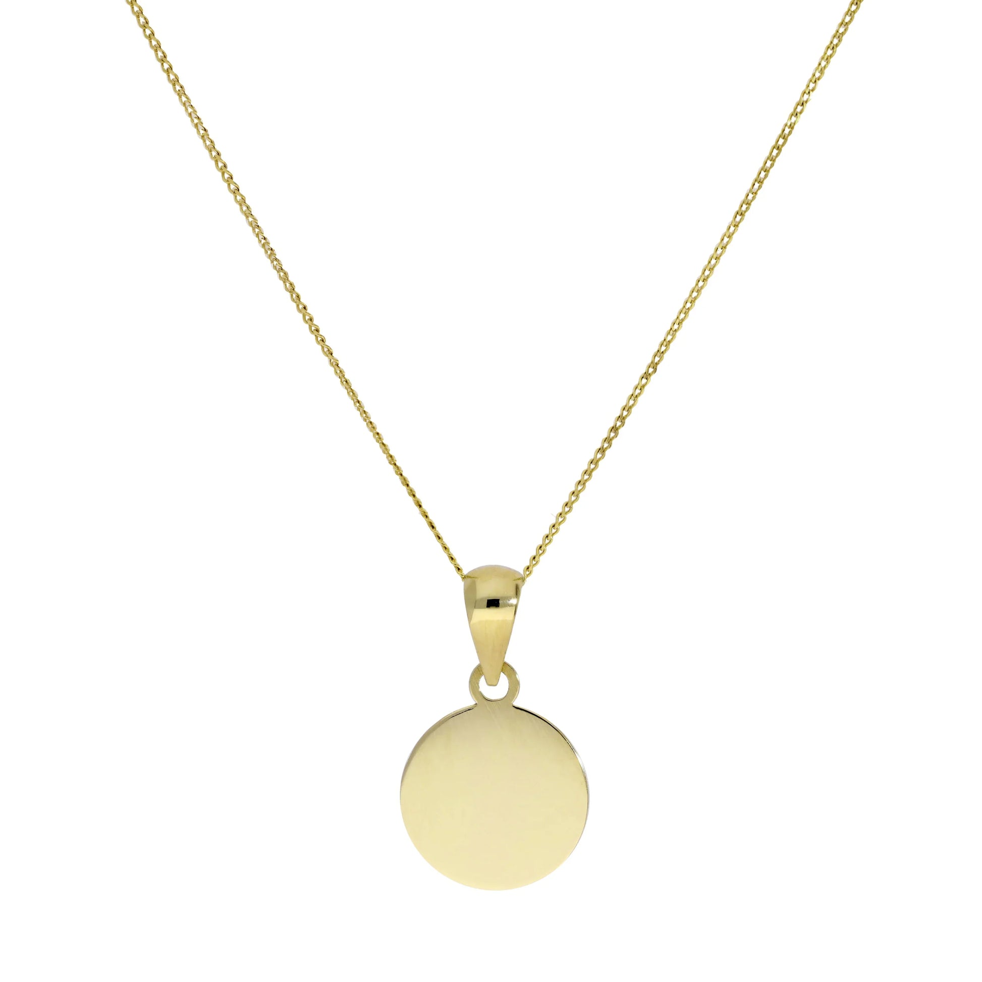 9ct Gold Engravable Round Pendant Necklace 16 - 20 Inches Chain