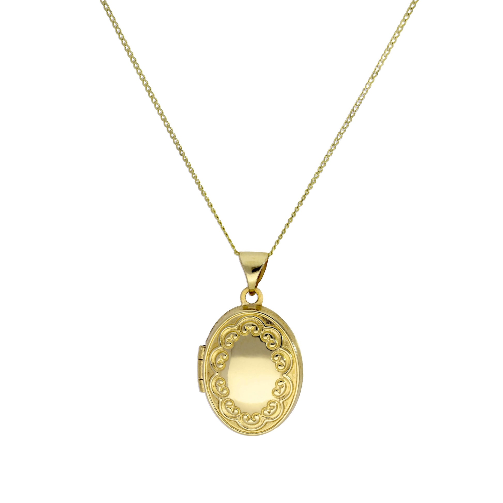 9ct Gold Oval Locket on Chain with Floral Design on Chain 16 - 18 Inches