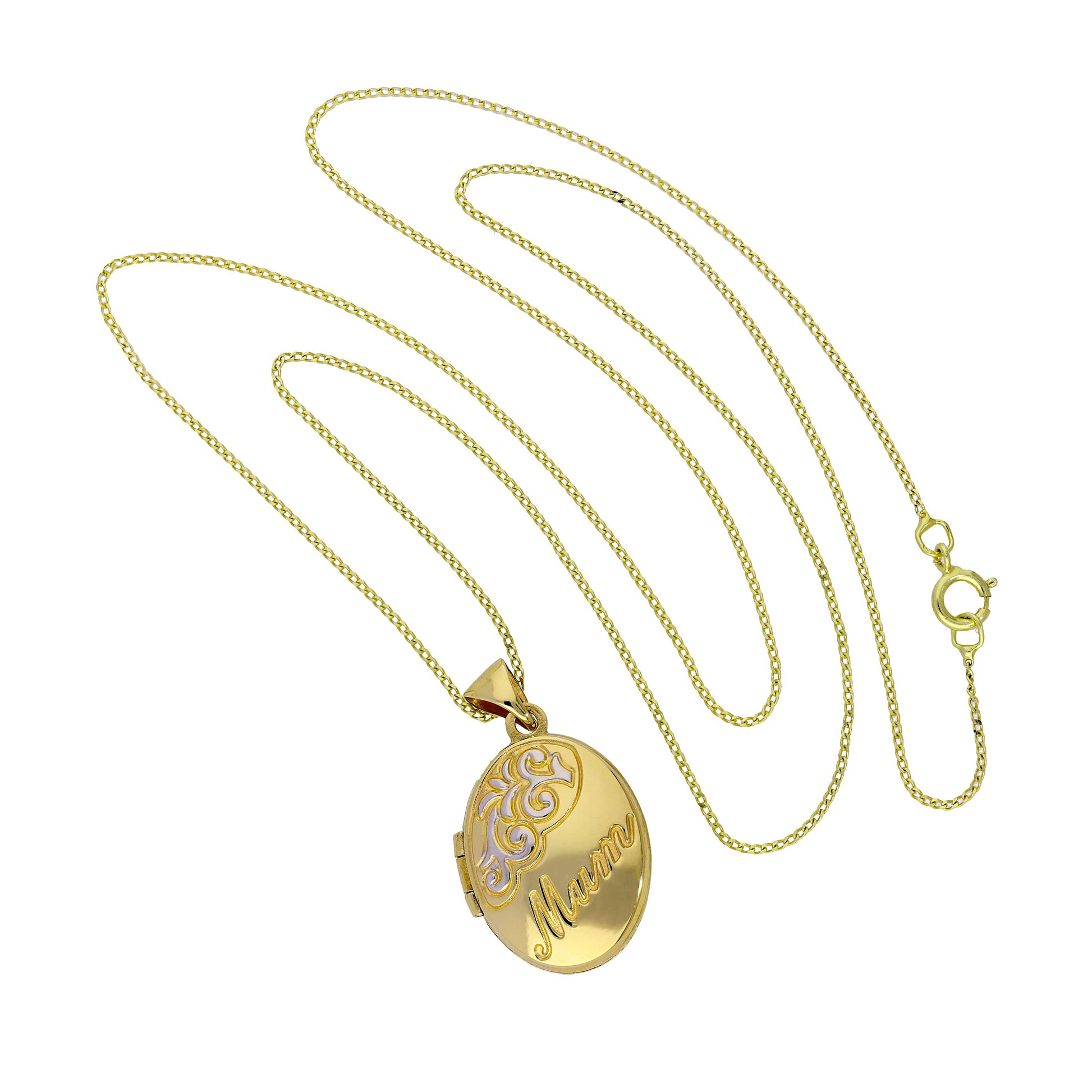 9ct Gold Oval Mum Locket with White Gold Design on Chain 16 - 18 Inches