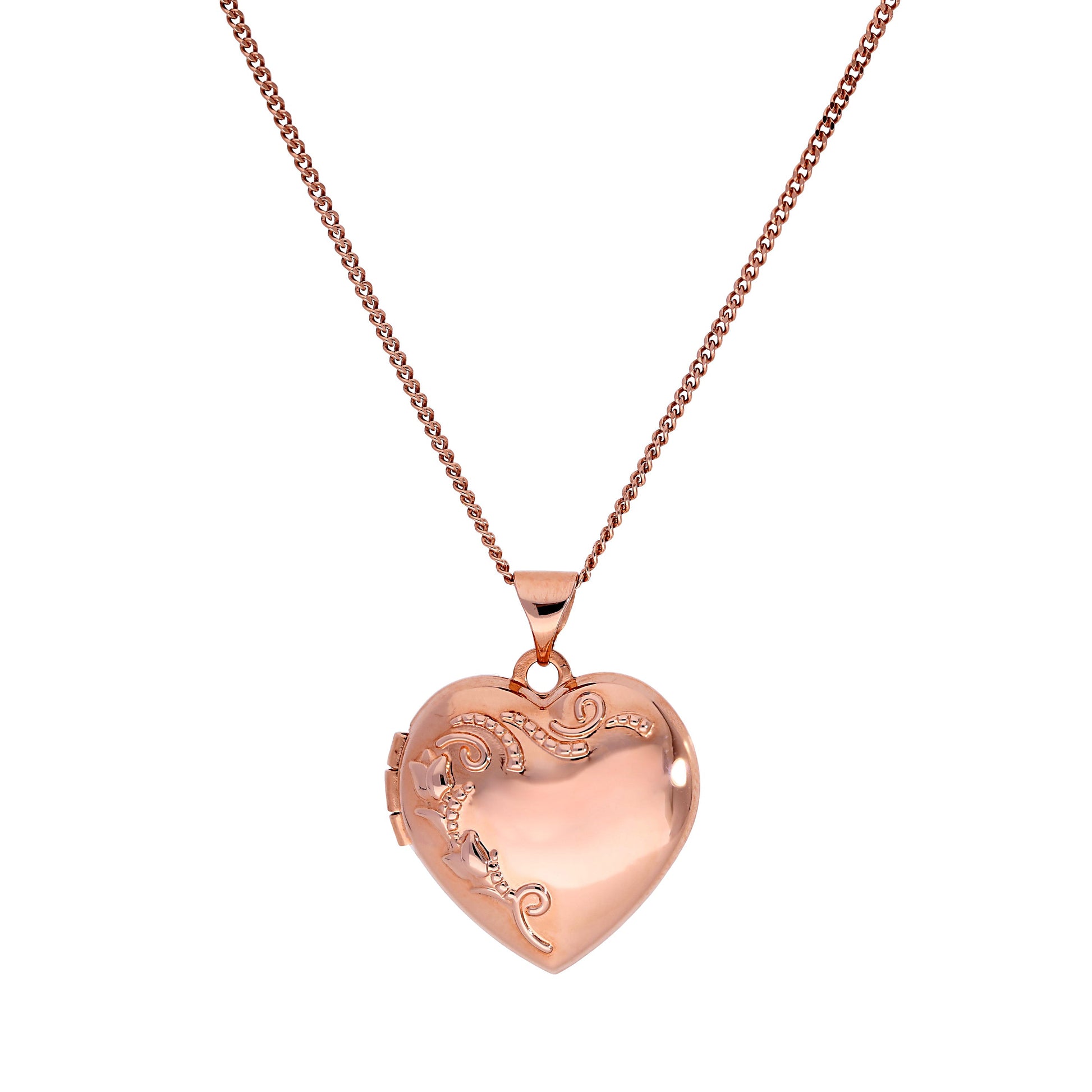 9ct Rose Gold Floral Heart Locket on Chain 16 - 20 Inches