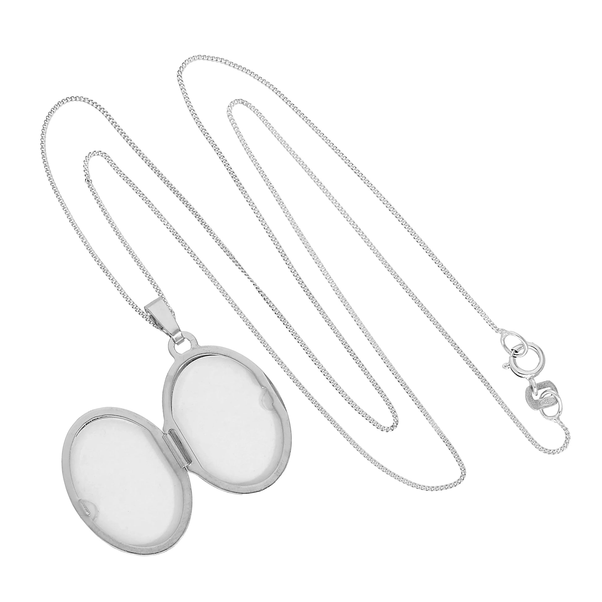 9ct White Gold Engravable Oval Locket with Wavy Design on Chain 16 - 18 Inches
