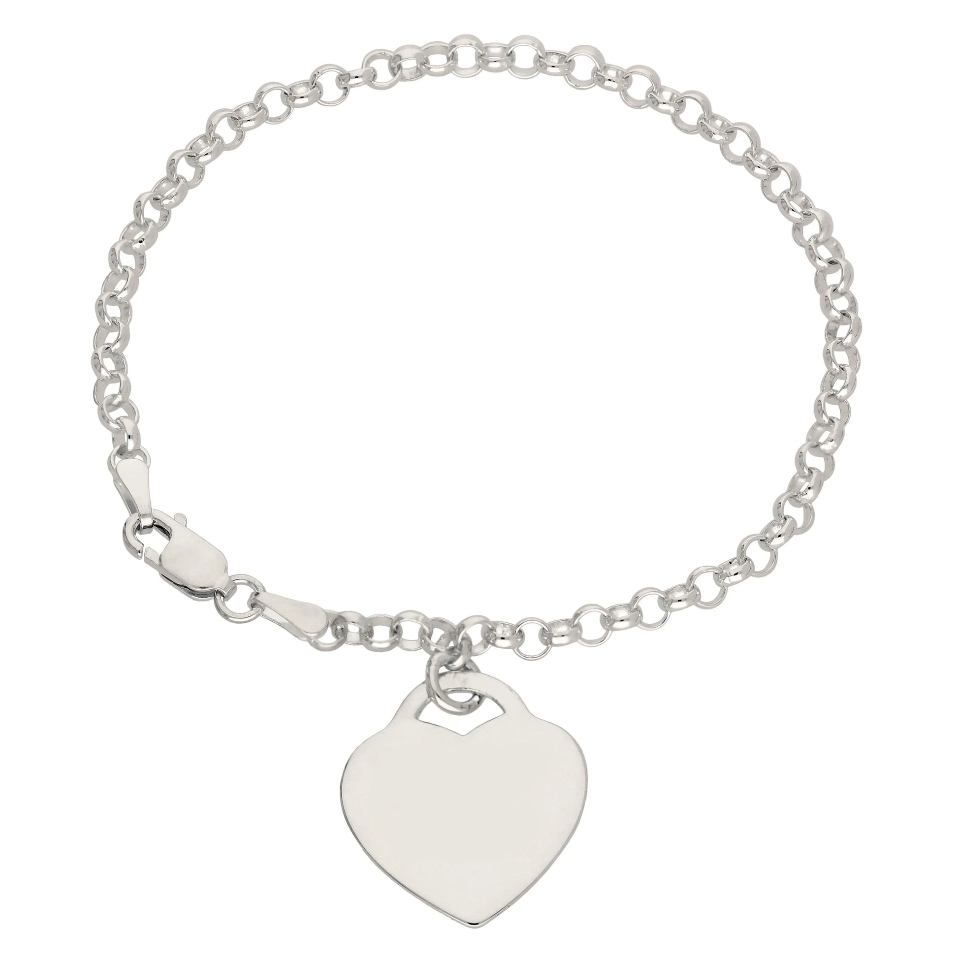 Sterling Silver 7 inch Bracelet Engravable Padlock Heart