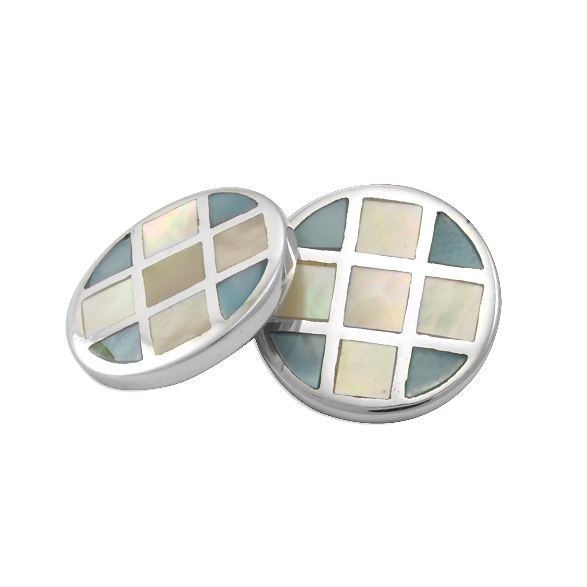 Sterling Silver Blue Mother Of Pearl Double-Sided Cufflinks