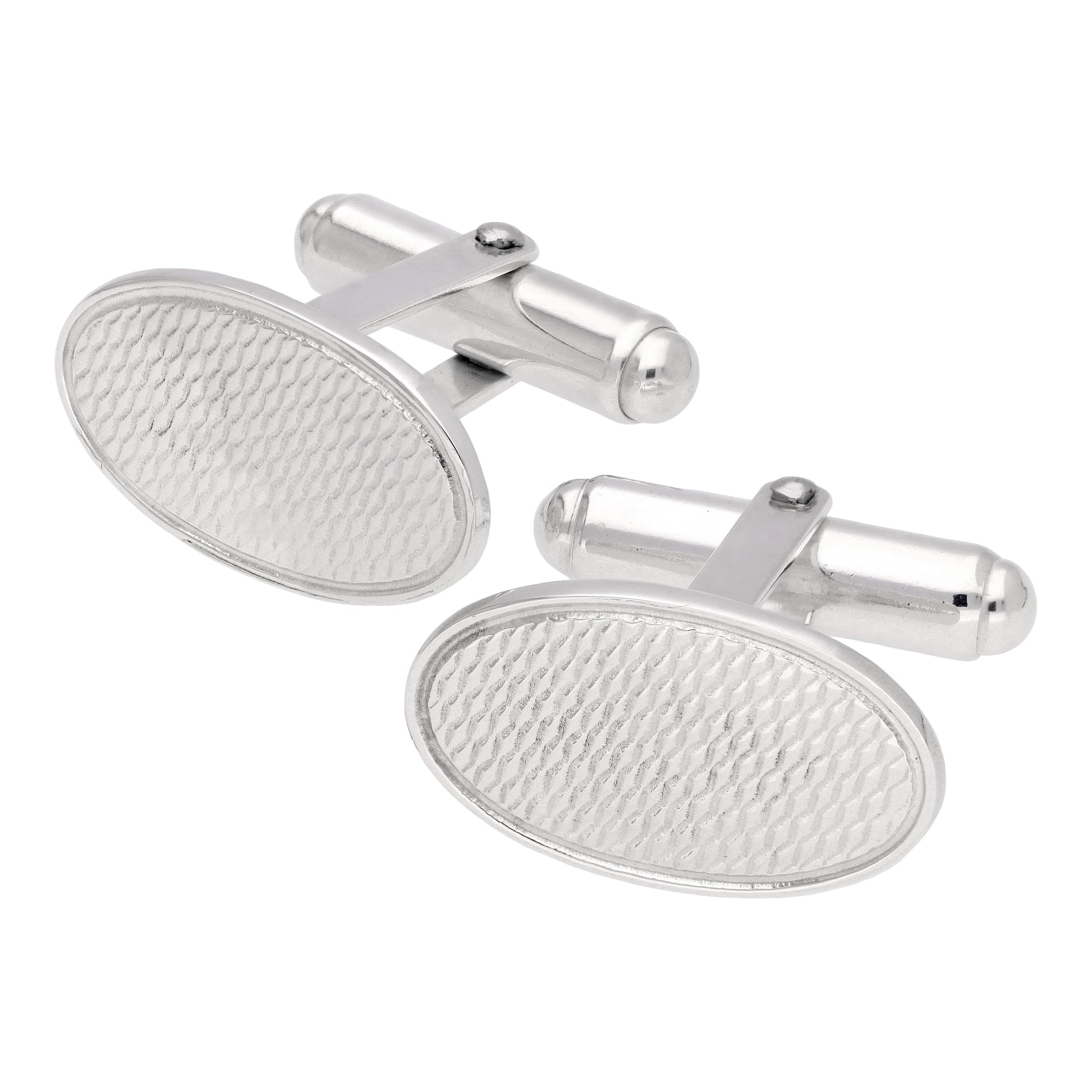 Sterling Silver Engine Turned Oval Swivel Back Cufflinks