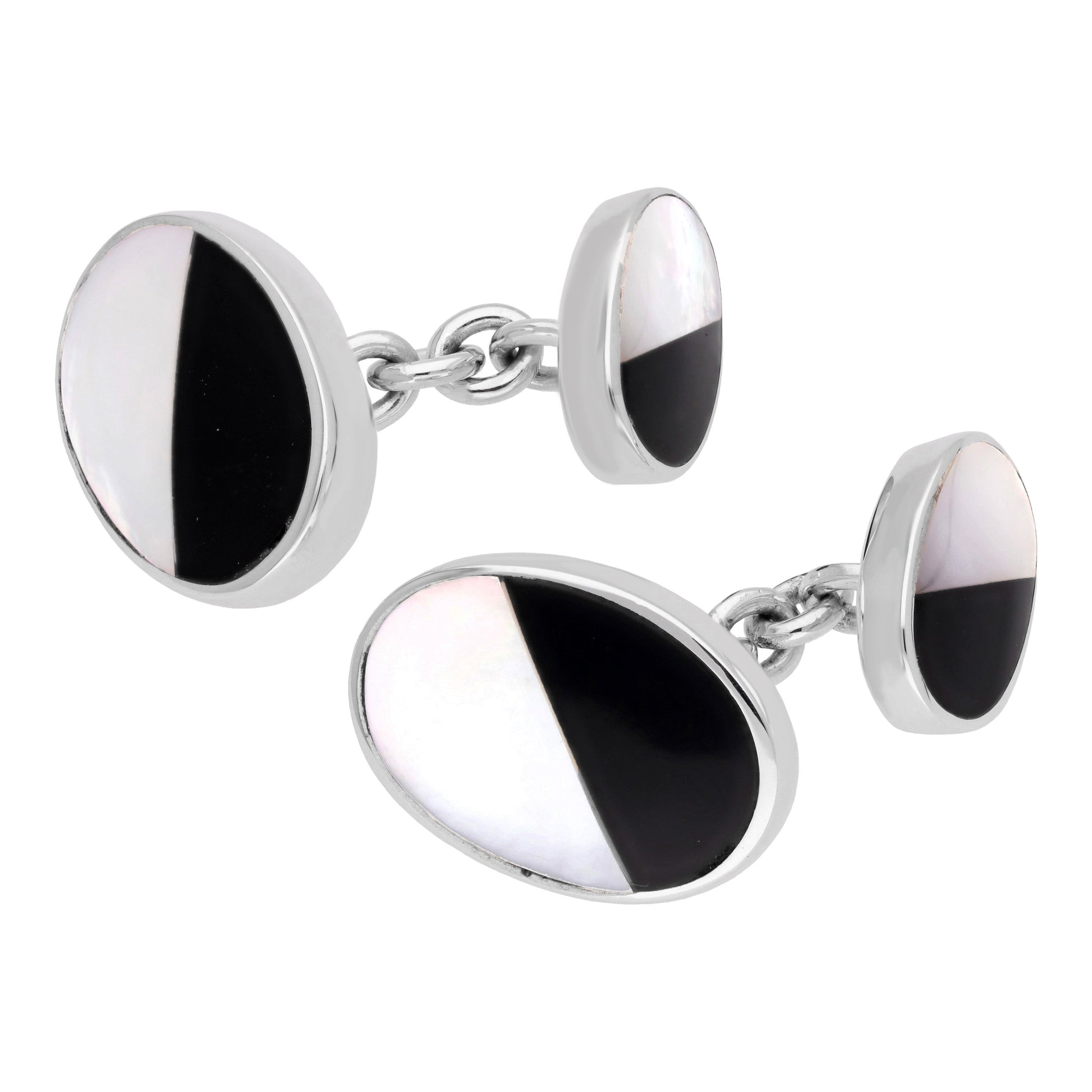 Sterling Silver Mother Of Pearl & Onyx Double-sided Cufflinks