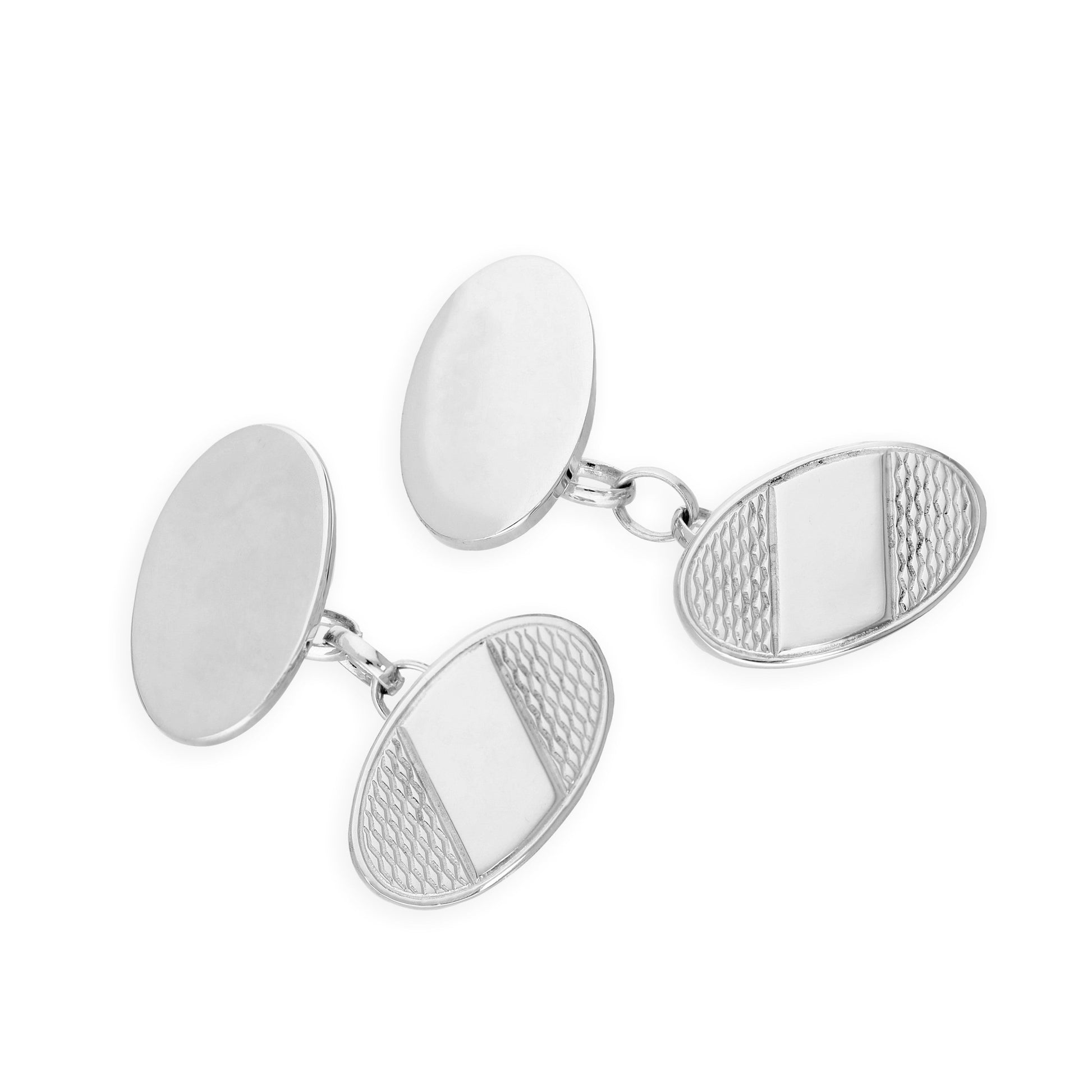 Sterling Silver Patterned Oval Cufflinks