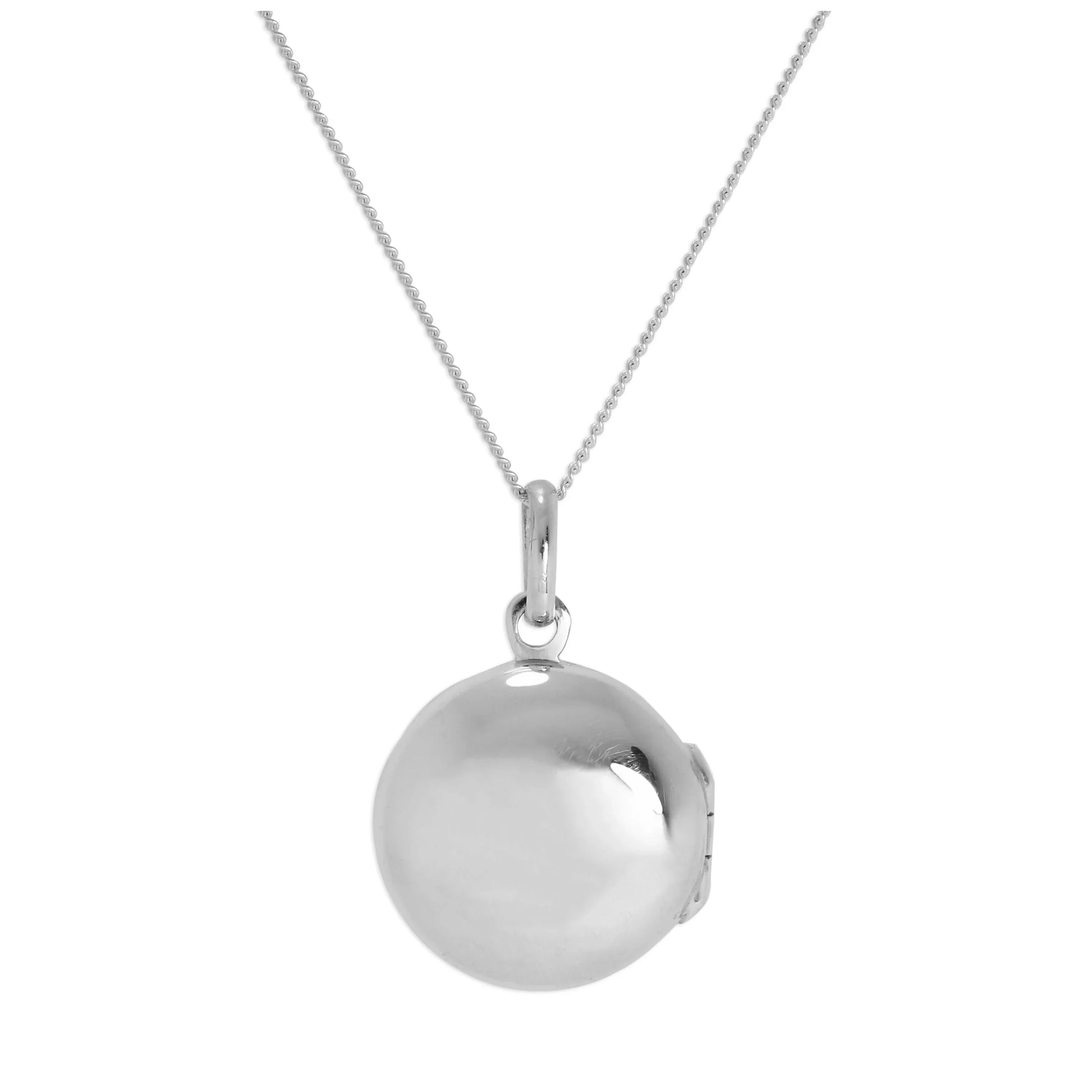 Sterling Silver Plain Round Locket on Chain 14 - 32 Inches