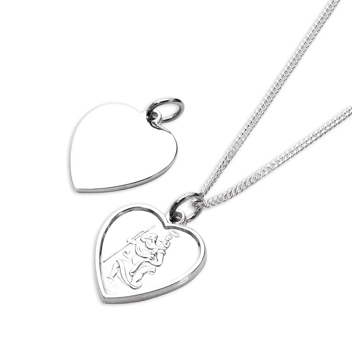 Sterling Silver Saint Christopher Embossed Heart Pendant Necklace 14 - 32 Inches
