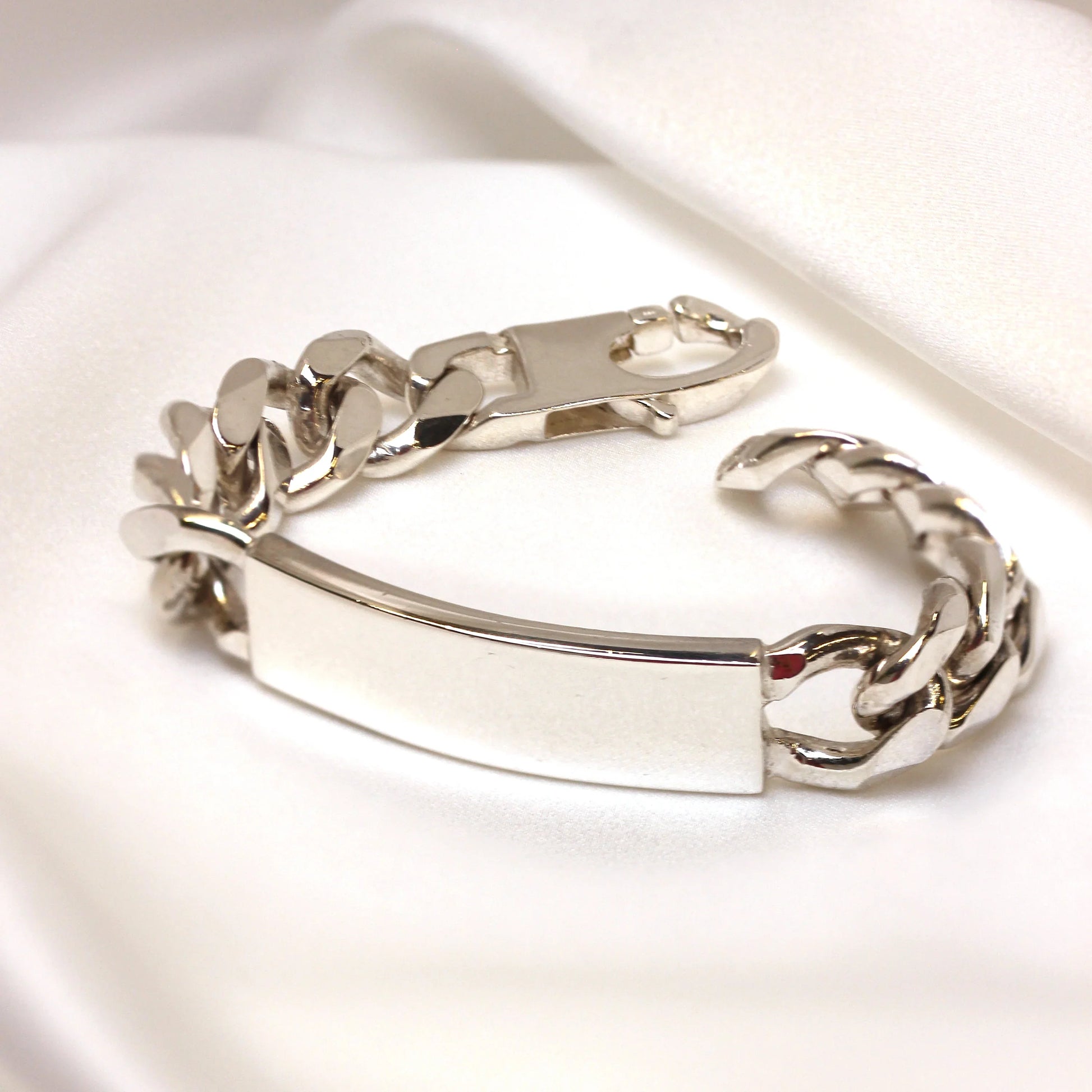 Sterling Silver Thick Heavy 15mm Curb Mens 8 Inch ID Bracelet