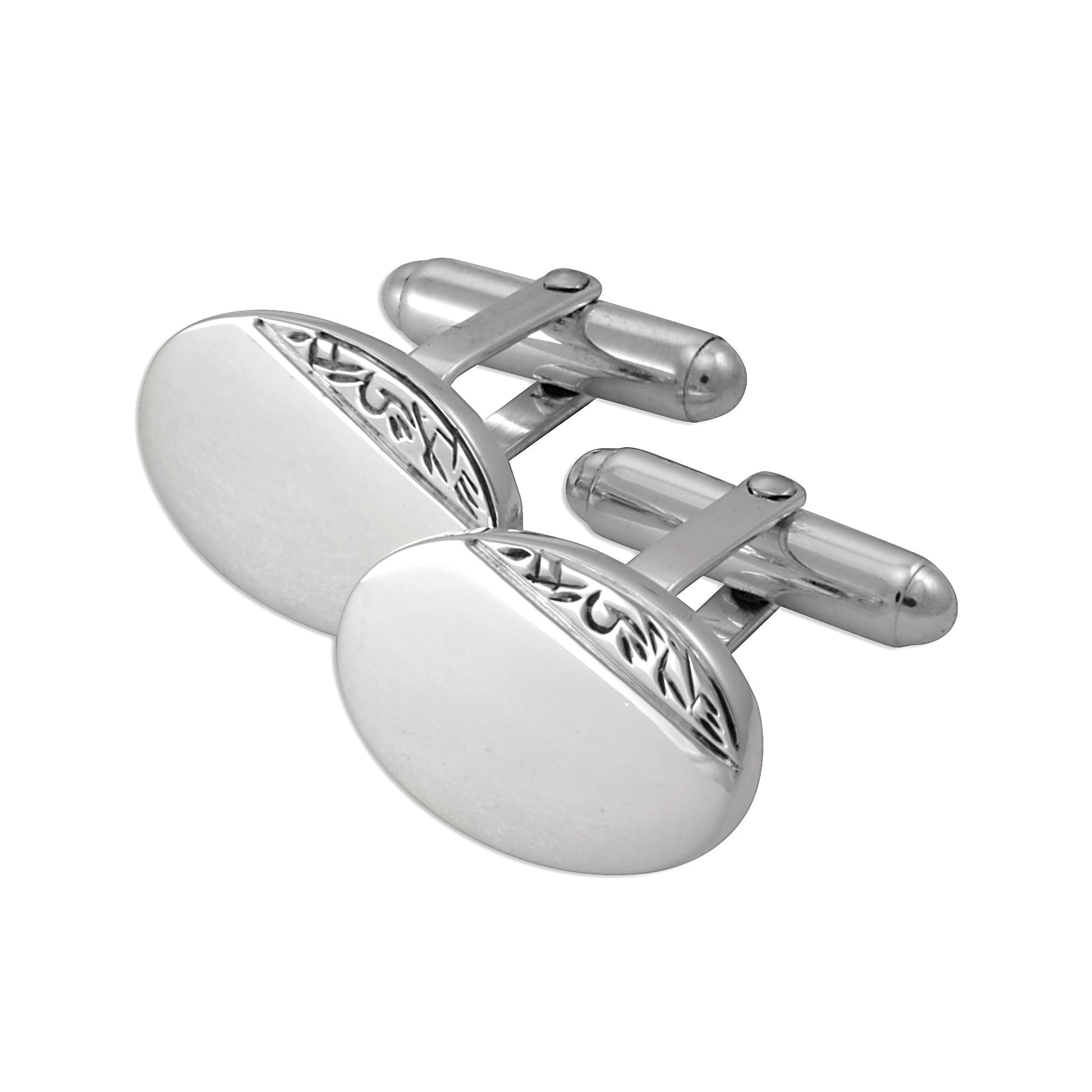 Sterling Silver Hand Engraved Oval Cufflinks