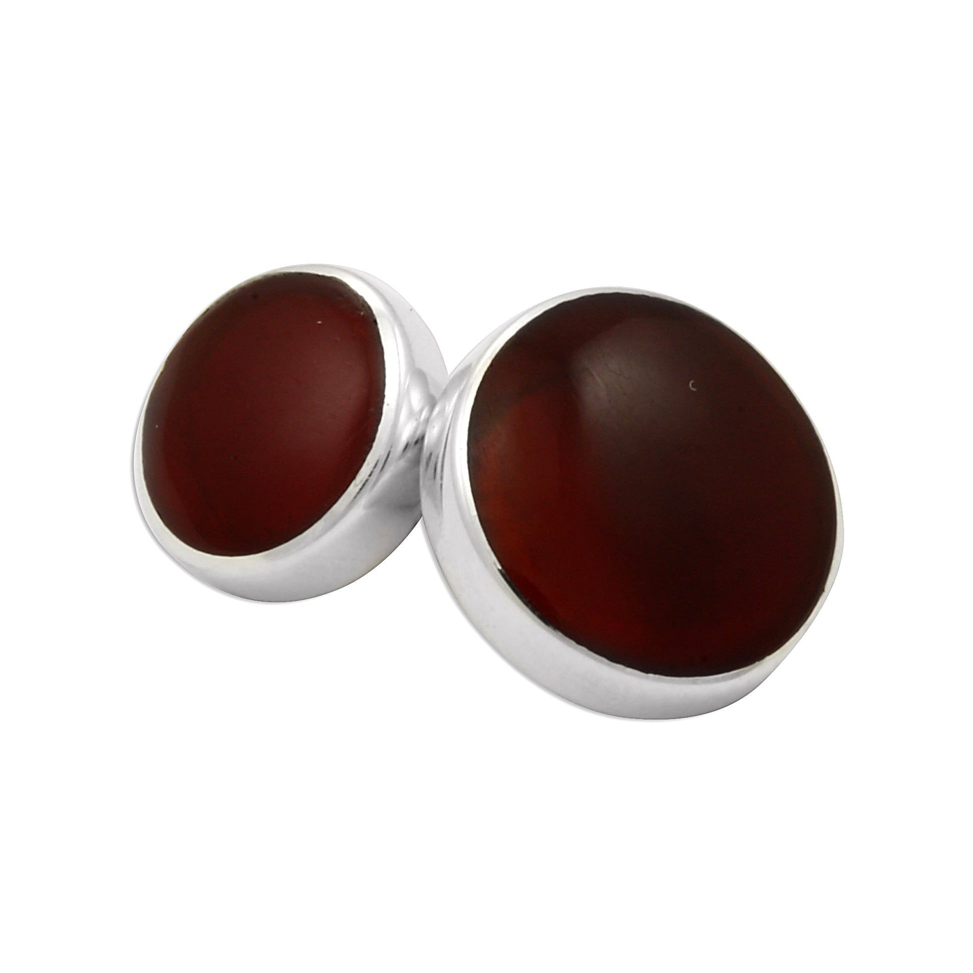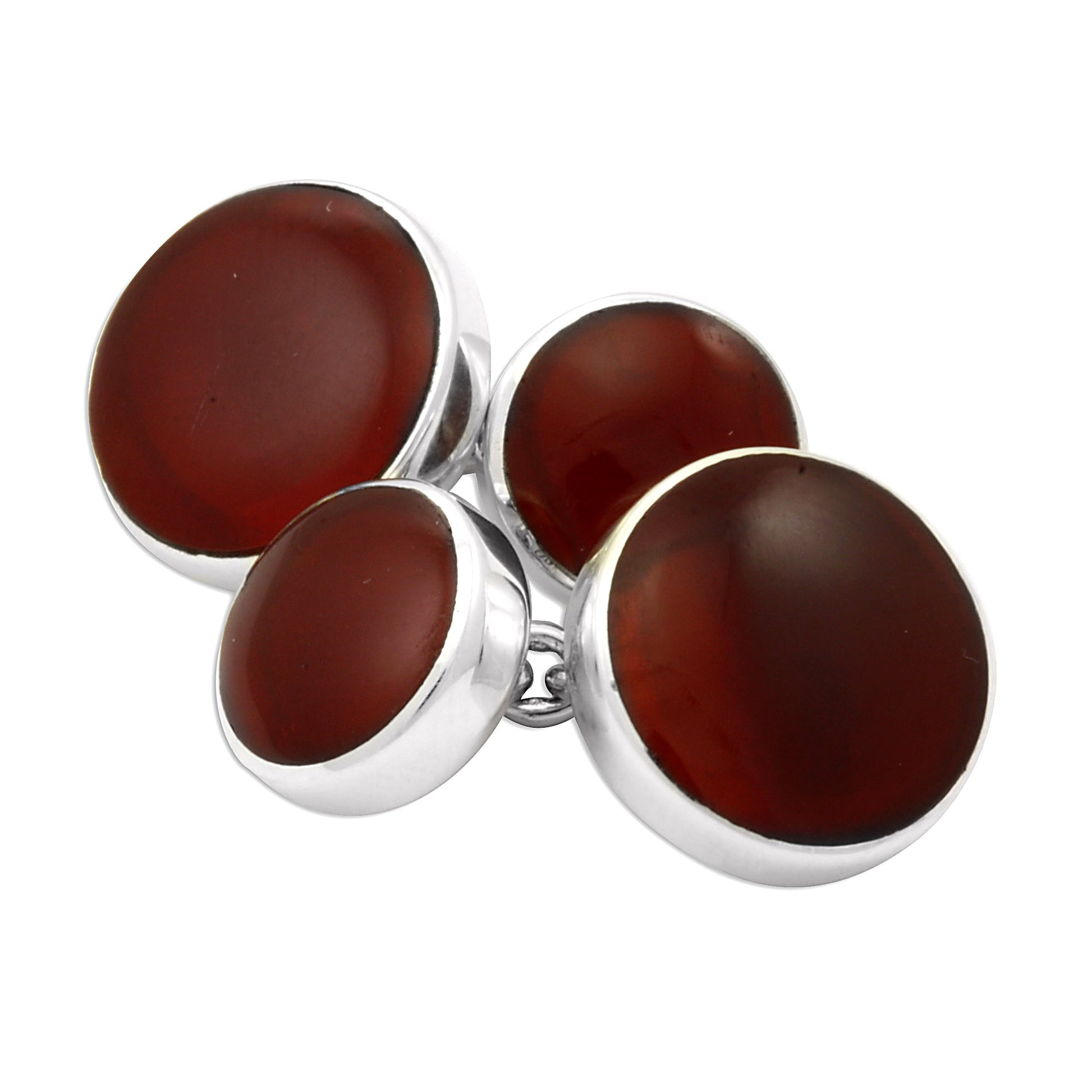 Sterling Silver Carnelian Double-sided Round Cufflinks