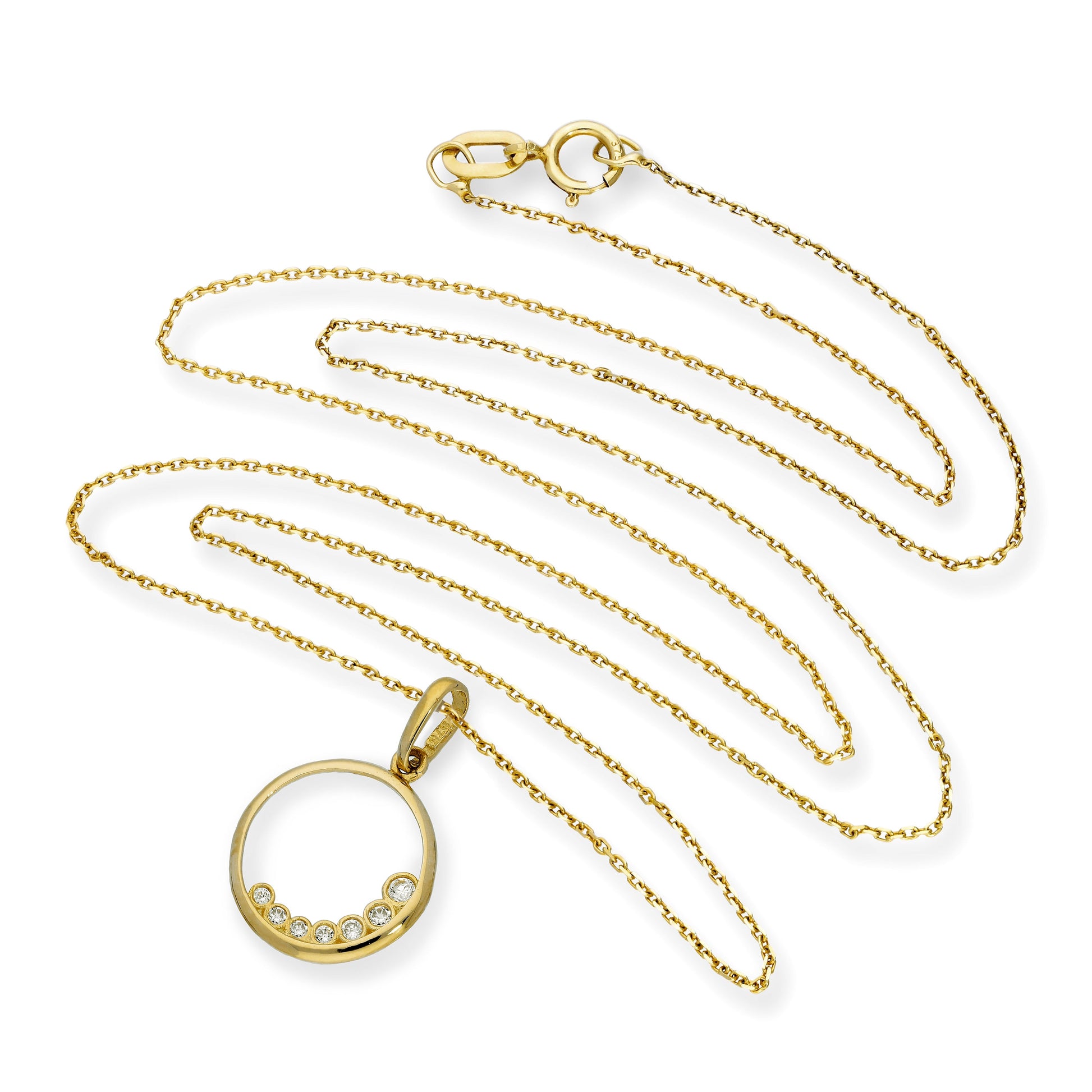 9ct Gold & Clear CZ Crystal Cut Out Circle Pendant Necklace