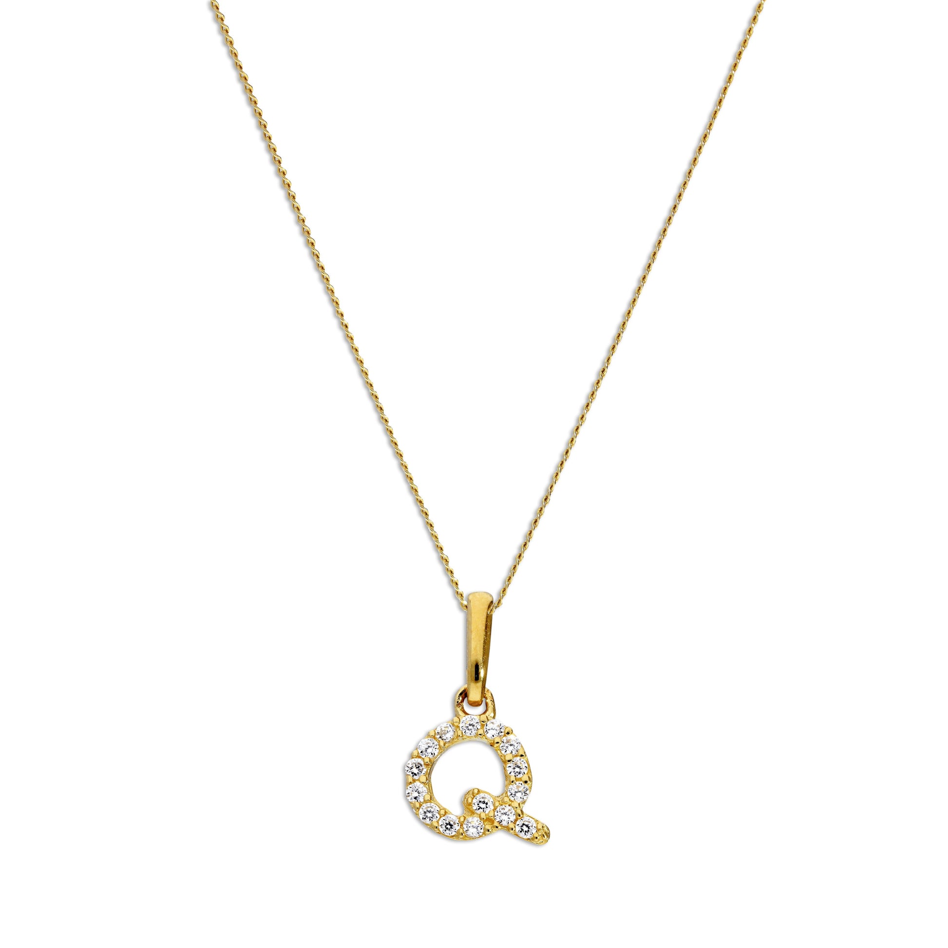 9ct Gold & Clear CZ Crystal Script Alphabet Letter Q Necklace 16 - 20 Inches