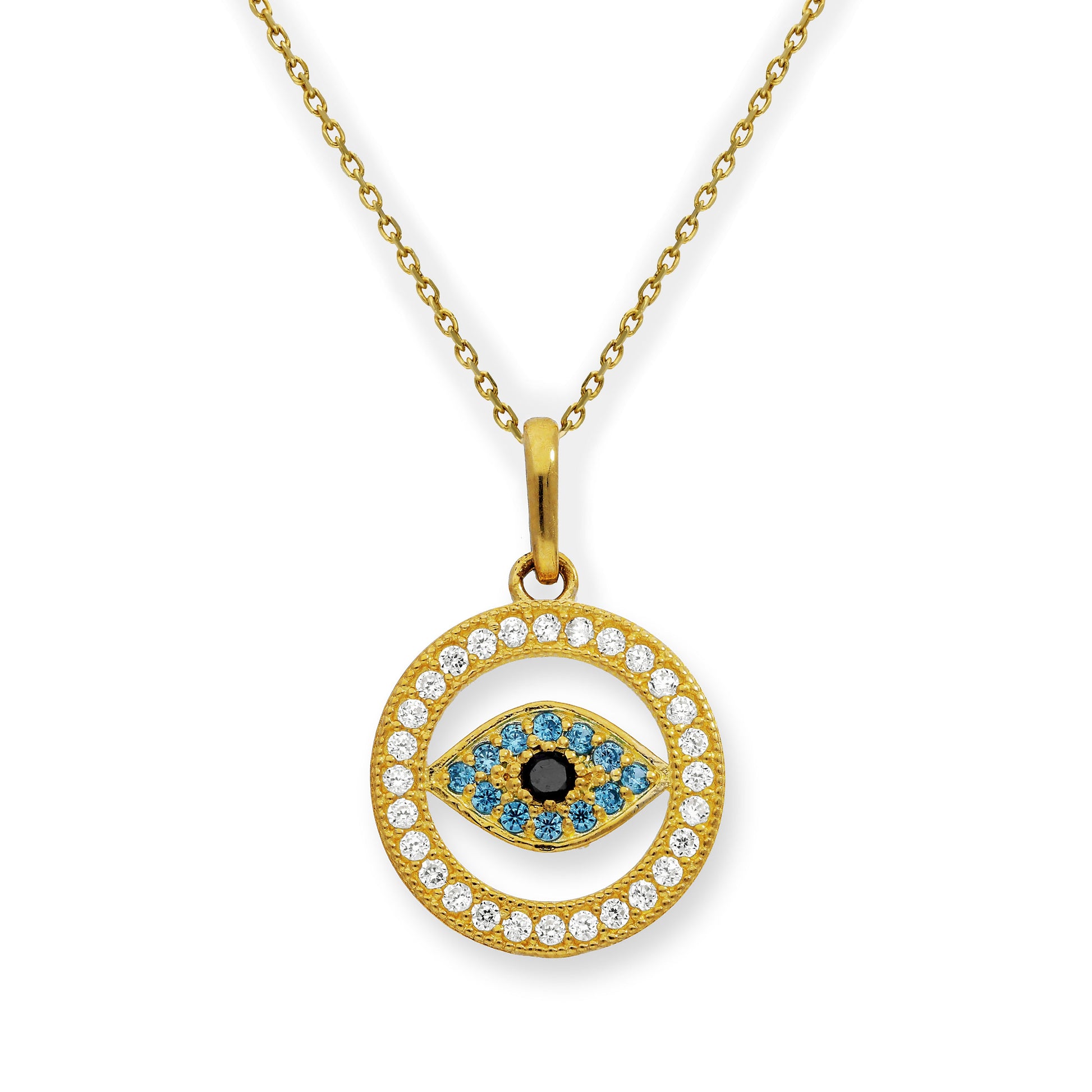 9ct Gold & CZ Crystal Evil Eye Pendant Necklace